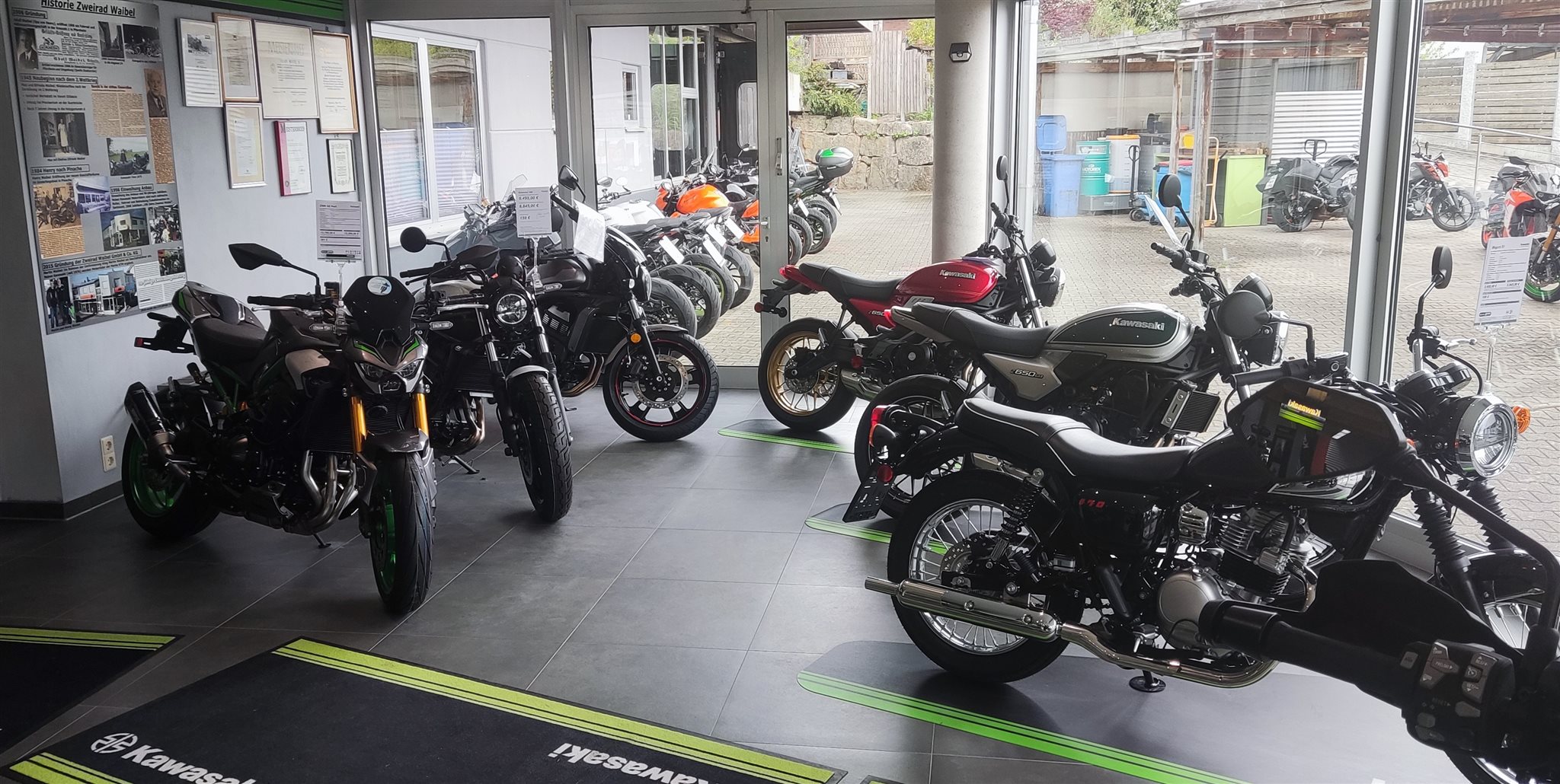 Neben Kreidler usw. ergänzte Henry Waibel die damals neue japanische Marke Kawasaki. Schnell wurde der Mehrgenerationen-Standort in Pforzheim zu klein und größere Räumlichkeiten mussten her.